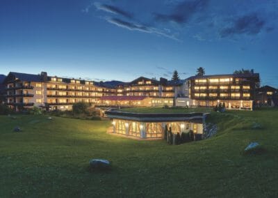 Und das alles in einer alpinen Wohlfühldestination, einem Resort inmitten einer Bilderbuchlandschaft. 117 Zimmer und Suiten in verschiedenen Kategorien bietet das Hotel. Empfehlenswert sind die Unterkünfte im neueren Trakt mit Balkon und Traumblick auf Wiesen, Weiden und das beeindruckende Bergpanorama. Die Ausstattung mit kostenfreiem WLAN (Verbindung jedoch etwas schleppend), Kühlschrank, Safe, großem TV-Screen etc. lässt kaum Wünsche offen. In diesem Gebäude befindet sich auch das Ladies-Spa, mit einem sehr ansprechenden behaglichen Ambiente mit offenem Kamin und Außenbereich mit tollem Ausblick. Hier sind Entspannung und Abschalten (keine Handy- und Internetverbindung) garantiert. Zusätzlich bietet der allgemeine 2600 m2 große Spa-Bereich im altrömischen Ambiente mit 18-Meter-Pool, finnischer Sauna, Dampfbad, Aromagrotte, Tepidarium ‚Solebad und Erlebnisduschen ebenfalls diverse Ruhezonen innen- und in der Natur zum Relaxen.