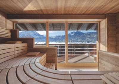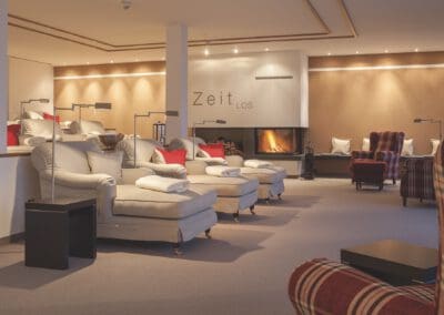 Am nächsten Tag kann man es ja wieder gut machen mit den zahlreichen angebotenen Aktivitäten wie Yoga, Qi Gong, E‑Biken, Nordic-Walking, Wandern, Skilaufen oder im schönen Indoor-Pool etliche Runden zu schwimmen. Nicht zu vergessen das gut ausgestattete Gym, in dem man sich quälen, pardon, stählen kann. Seit Kurzem verwöhnt das Hotel seine Gäste mit dem 450 m2 großen Naturteich PanoramaQUELL inmitten des 1200 m2 großen Hotel-Naturparks. Er wirkt wie ein kleiner Bergsee, der in den Sommermonaten zum Schwimmen einlädt oder nur dazu am Ufer in den komfortablen Daybeds zu relaxen.