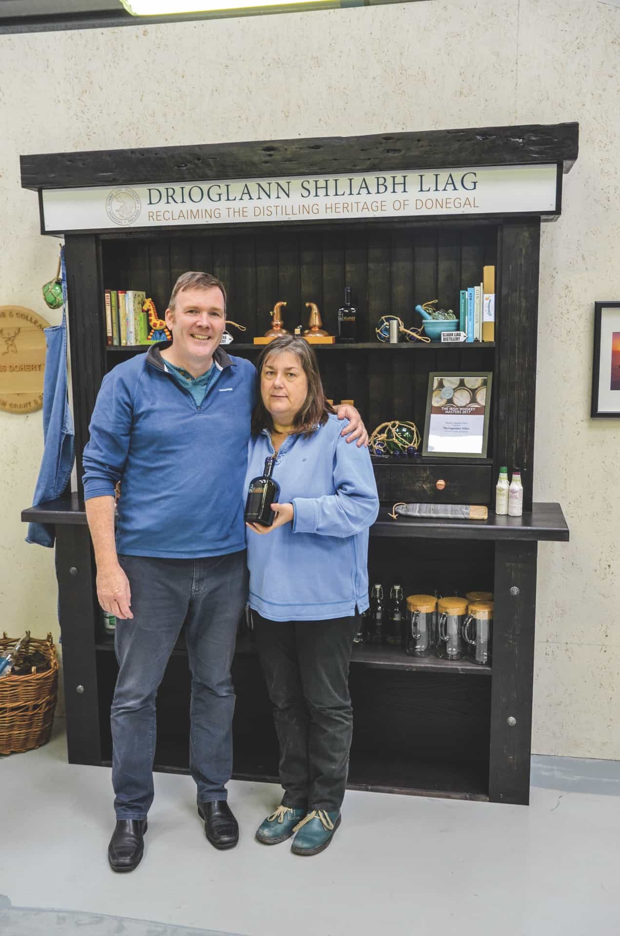 Die derzeit nordwestlichste Destillerie Irlands liegt an den höchsten Klippen des Landes oder – halt, ich muss natürlich das Futur benutzen – wird dort liegen. Denn obwohl es bereits einen „Silky“ genannten Whiskey und seit Oktober einen Gin gibt, steht auch hier der Bau der eigentlichen Brennerei noch bevor. Die kleine Gin-Anlage steht in einem unscheinbaren Gebäude am Rande von Carrick in der Nähe der Cliffs von Slieve League, und heißt – wir sind schließlich im Gaeltacht – wie diese Küstenline auf irisch “Shliabh Liag“. Aufgrund vieler Falschmeldungen verirren sich immer wieder Reisende und sogar Whisky-Händler hierher in der Annahme, hier werde bereits Whiskey produziert. Doch der „Silky“ ist ein Auftragswerk für das Unternehmen, was Gründer James Doherty nicht müde wird zu betonen. Wie bei den Kollegen anderenorts wird man sehr leicht verwirrt, da im Sinne des „irischen Futur II“ bereits Marken und Whiskey-Namen auf der Website einer künftig zu bauenden Destillerie auftauchen, die es bei genauerem Lesen noch gar nicht gibt. Erleichtert sind James und seine Frau, nun endlich zumindest den „An Dúlamán“ Irish Maritime Gin anbieten zu können, dessen Name „Seetang-Ernter“ auf die vielen Zutaten von der heimischen Küste hinweist, von denen einige aufgrund besonders niedriger Tide angeblich nur bei Vollmond geerntet werden können. Diese und andere Besonderheiten, welche die leidenschaftlichen Entrepreneure hervorheben, erinnern unwillkürlich an die Gaben irischer Geschichtenerzähler.