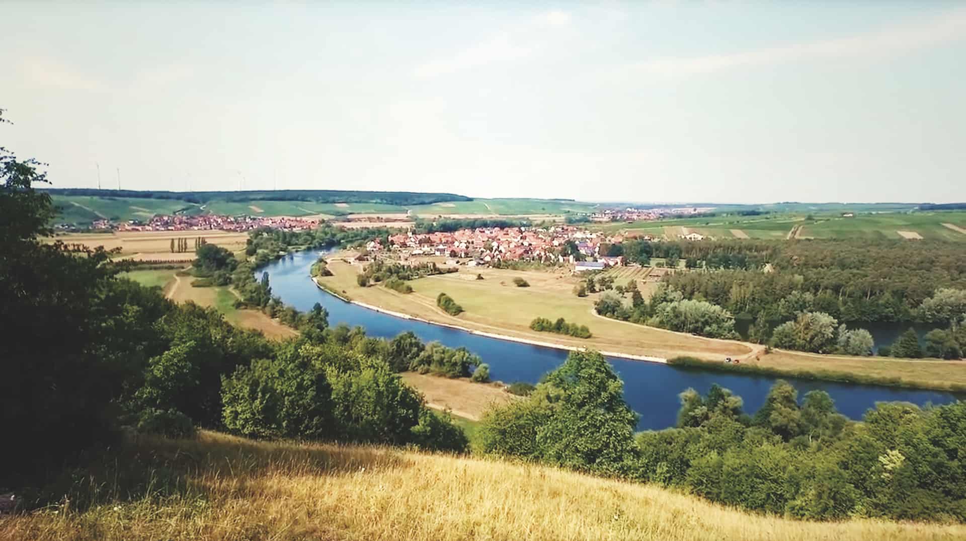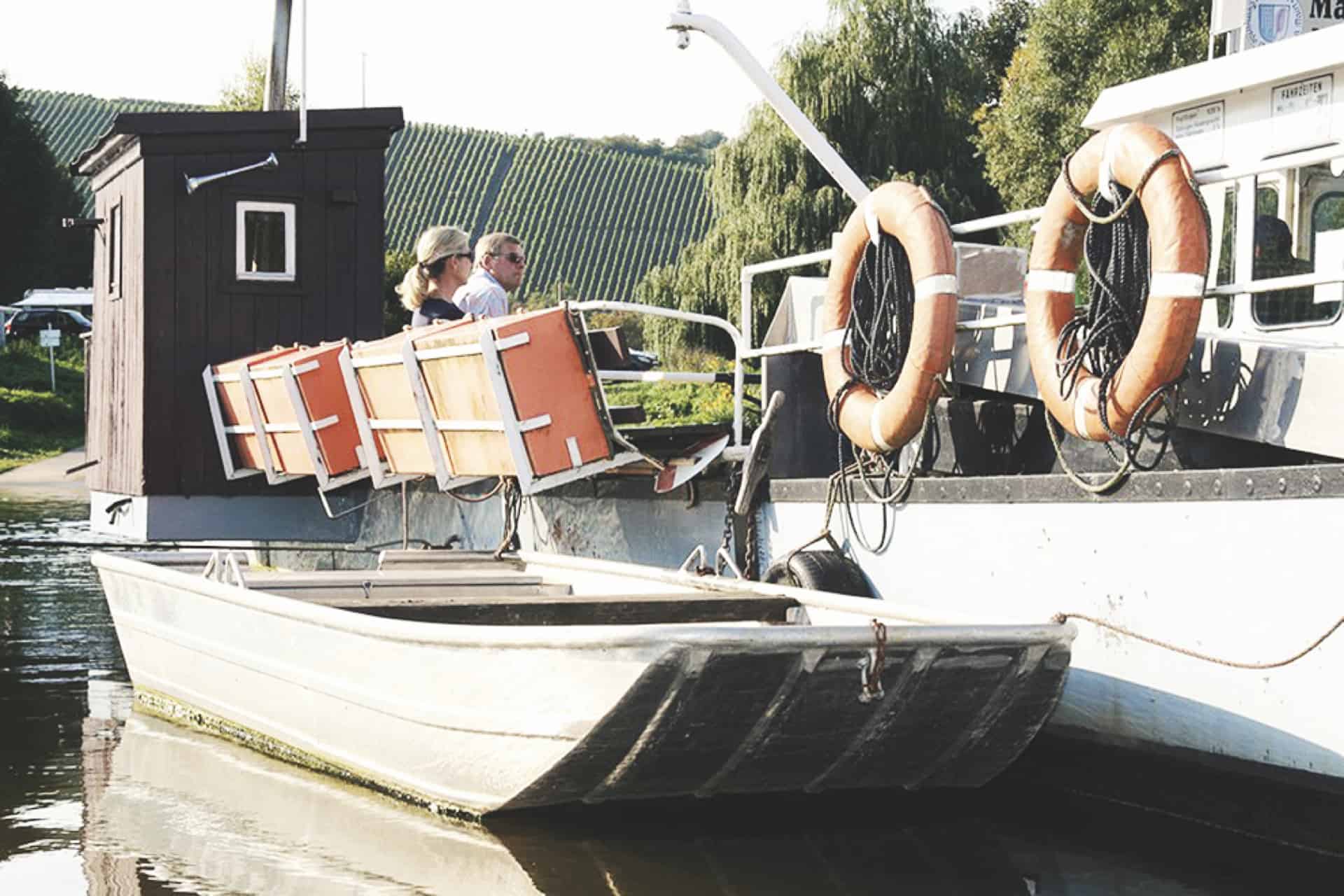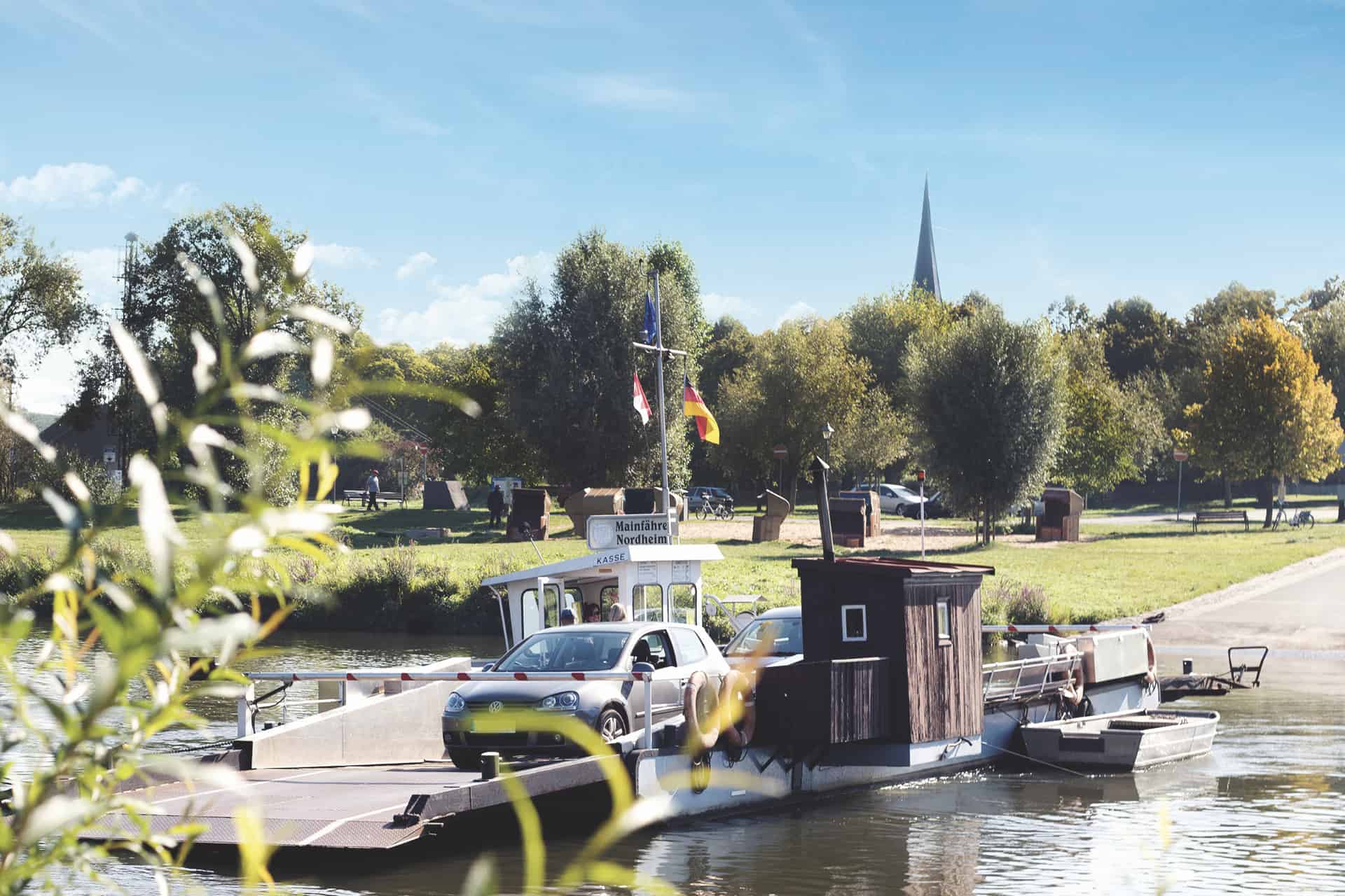 Getrennt vom Main liegen an der Mainschleife zwei Winzerorte nur einen Steinwurf auseinander: Nordheim auf der Weininsel und Escherndorf unterhalb der Vogelsburg. Wer es nicht schafft, einen Stein in den Garten des Nachbarn auf der anderen Uferseite zu werfen, dessen Stein landet gewiss in den Fluten des Flusses. Der Main trennt die Menschen diesseits und jenseits der starken Strömung seit Jahrhunderten. Die Weinbauern und Landwirte hüben wie drüben legen schon immer großen Wert auf ein gutes Miteinander. Ein alter Schelch war die erste schwimmende Brücke zwischen der Weininsel und dem „Festland“. Seit einigen Jahrzehnten verbindet eine Fähre die Menschen miteinander. Inmitten herrlicher Natur ersetzt die alte Fähre, die schon 63 Jahre auf dem Buckel hat, eine echte Brücke in dem Landschaftsschutzgebiet. Das heute motorisierte Floß ist nicht nur eine wichtige schwimmende Brücke, sondern sorgt(e) so für manche unbekümmerte Liebschaft zwischen „Oademern“ (Nordheimern) und „Aschdorfern“ (Escherndorfern). www.volkach.de