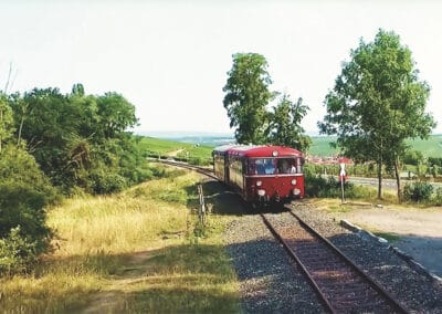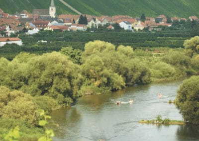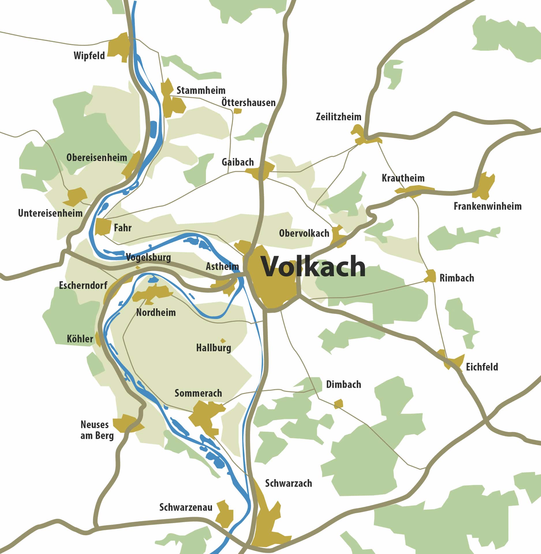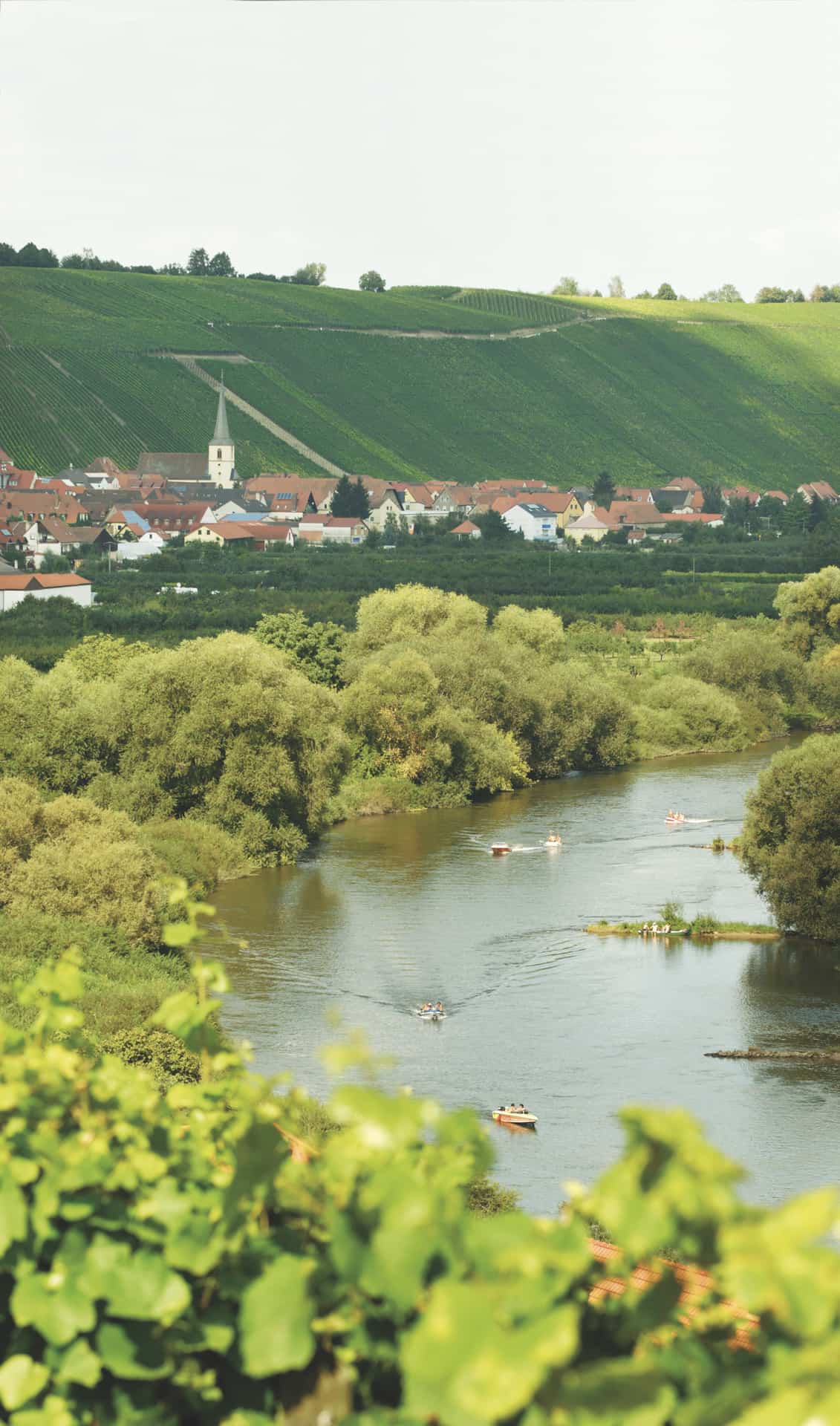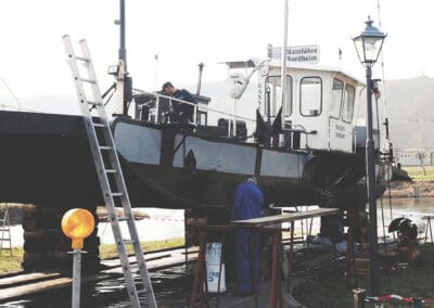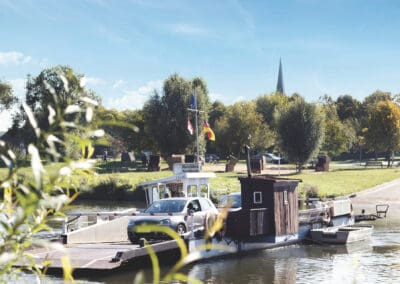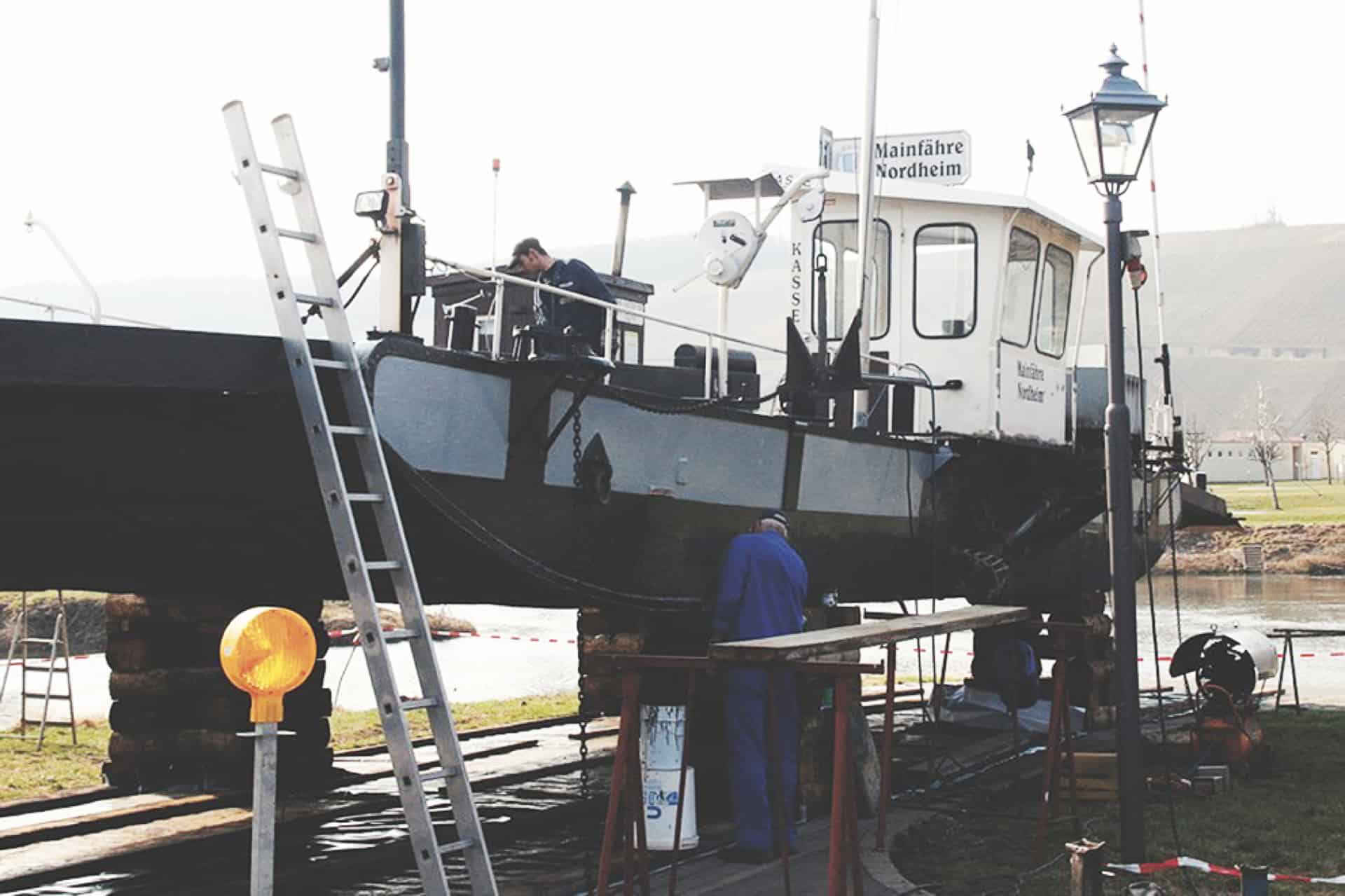 Getrennt vom Main liegen an der Mainschleife zwei Winzerorte nur einen Steinwurf auseinander: Nordheim auf der Weininsel und Escherndorf unterhalb der Vogelsburg. Wer es nicht schafft, einen Stein in den Garten des Nachbarn auf der anderen Uferseite zu werfen, dessen Stein landet gewiss in den Fluten des Flusses. Der Main trennt die Menschen diesseits und jenseits der starken Strömung seit Jahrhunderten. Die Weinbauern und Landwirte hüben wie drüben legen schon immer großen Wert auf ein gutes Miteinander. Ein alter Schelch war die erste schwimmende Brücke zwischen der Weininsel und dem „Festland“. Seit einigen Jahrzehnten verbindet eine Fähre die Menschen miteinander. Inmitten herrlicher Natur ersetzt die alte Fähre, die schon 63 Jahre auf dem Buckel hat, eine echte Brücke in dem Landschaftsschutzgebiet. Das heute motorisierte Floß ist nicht nur eine wichtige schwimmende Brücke, sondern sorgt(e) so für manche unbekümmerte Liebschaft zwischen „Oademern“ (Nordheimern) und „Aschdorfern“ (Escherndorfern). www.volkach.de